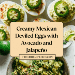 This Mexican Deviled Eggs recipe offers a creamy, flavorful twist on classic deviled eggs by incorporating ripe avocado and Mexican crema. Enhanced with zesty lime juice, jalapeño pepper, and a blend of spices, these deviled eggs are perfect as an appetizer or party snack. The garnish of smoked paprika, fresh cilantro, and jalapeño slices adds vivid color and an extra punch of flavor.