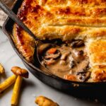 - Use a pie dish if you don’t have an ovenproof skillet, transferring the mixture before topping with puff pastry.