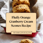 These Orange Cranberry Cream Scones are tender, flaky, and bursting with the sweet-tart flavor of dried cranberries and fresh orange zest. Perfect for breakfast or afternoon tea, the scones are enriched with cold butter and heavy cream, creating a moist and tender crumb. Easy to prepare with simple pantry ingredients, they bake to a beautiful golden brown in the oven and can be frozen for later enjoyment.