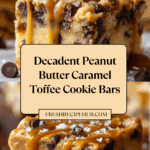 These Peanut Butter Caramel Toffee Chocolate Chip Cookie Bars are a decadent treat perfect for satisfying any sweet tooth. Combining rich peanut butter, gooey caramel, crunchy toffee, and melty chocolate chips, they offer a delightful blend of textures and flavors in every bite.