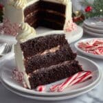 Keywords: peppermint fudge cake, peppermint chocolate cake, holiday cake, peppermint ganache, peppermint buttercream, chocolate cake recipe