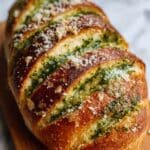 This Pesto Parmesan Sourdough bread combines the tangy depth of traditional sourdough with the savory flavors of basil pesto and parmesan cheese. Featuring a cold fermentation process to develop a complex flavor and a crusty, golden exterior baked in a Dutch oven, this artisan loaf is perfect for sandwiches or as a flavorful accompaniment to meals.