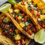Keywords: Pineapple chicken tacos, tropical chicken tacos, pineapple salsa, easy chicken tacos, weeknight dinner, Mexican fusion recipe