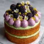 This Pistachio and Blackberry Olive Oil Cake is a delightful blend of nutty and fruity flavors, perfect for any occasion. Moist and tender, it combines a pistachio-infused cake with creamy blackberry buttercream and fresh berries for a beautiful finish.