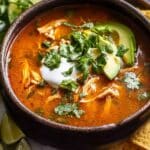 This Poblano Chicken Tortilla Soup is a rich and flavorful Mexican-inspired dish featuring roasted poblano peppers, tender chicken, black beans, corn, and a creamy broth. Topped with crunchy tortilla strips, fresh cilantro, sliced avocado, and lime wedges, this soup is perfect for a comforting and nutritious meal.