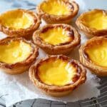Keywords: Portuguese custard tarts, Pastéis de Nata, puff pastry, creamy custard, caramelized tarts, traditional Portuguese dessert