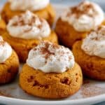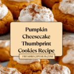 Delight in these Pumpkin Cheesecake Thumbprints, a perfect fall treat combining spiced pumpkin cookies with a smooth and creamy cheesecake filling. Soft, buttery cookies infused with pumpkin pie spice are baked to golden perfection and filled with a luscious cream cheese frosting, then finished with a sprinkle of pumpkin pie spice for an extra seasonal touch. Ideal for holiday gatherings or cozy afternoons with a warm cup of coffee.