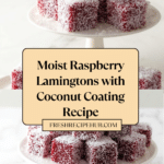 Raspberry Lamingtons are a delightful twist on the classic Australian treat, featuring light, fluffy sponge cake coated in a vibrant raspberry glaze and rolled in coconut. This recipe combines a tender hot milk sponge with a tangy, sweet raspberry topping that’s perfect for afternoon tea or a special dessert.