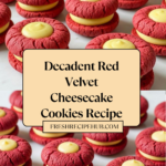 Delight in these luscious Red Velvet Cheesecake Cookies featuring a rich, cocoa-infused cookie dough base filled with a creamy cheesecake center. Perfectly tender and mildly tangy, these cookies combine the classic flavors of red velvet cake with a luscious cheesecake filling, baked to perfection for a delectable treat.