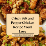 Crispy and flavorful Salt and Pepper Chicken featuring tender bite-sized chicken breast pieces marinated and fried to golden perfection, tossed with aromatic garlic, green onions, and a savory blend of salt, pepper, and soy sauce for a delicious Asian-inspired dish.