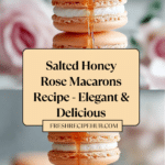 These Salted Honey Rose Macarons are delicate French almond meringue cookies with a smooth, floral honey-rose buttercream filling. The subtle salted butter balances the sweetness, while edible rose petals and fleur de sel add a fragrant, elegant finish. Perfect for special occasions or an indulgent treat, this recipe creates visually stunning pink macarons with a crisp shell and chewy center.
