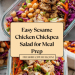 A vibrant and nutritious Sesame Chicken and Chickpea Salad that combines tender seared chicken with crunchy cabbage, chickpeas, carrots, cashews, and a flavorful sesame-ginger dressing. This salad is perfect for meal prep as the flavors deepen when made ahead.