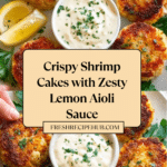 These crispy and flavorful Shrimp Cakes with Lemon Aioli make for a perfect appetizer or light meal. Made with fresh shrimp, seasoned with lemon zest and Old Bay, and pan-fried to golden perfection, they are paired with a zesty, creamy lemon aioli for dipping.