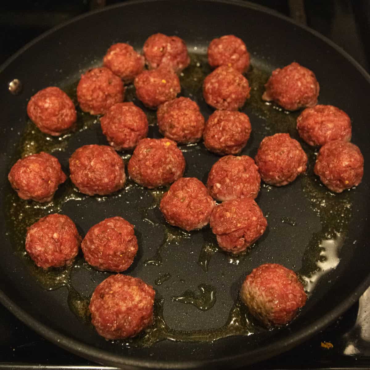 - Cook the Meatballs: Heat olive oil in a large skillet over medium-high heat. Once shimmering, add the meatballs and brown them by turning every minute until evenly seared on all sides.