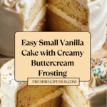 This Small Vanilla Cake recipe features a moist and fluffy vanilla sponge layered with a smooth, creamy vanilla buttercream. Perfectly sized with two 6-inch round cake pans, this classic cake is easy to make from scratch using staple ingredients. The cake is baked to golden perfection, then frosted with a luscious vanilla buttercream that is sweet, buttery, and perfectly balanced. Ideal for celebrations, afternoon tea, or any time you crave a simple, delicious homemade dessert.