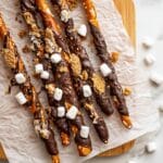 Keywords: s’mores, pretzel rods, chocolate, marshmallows, graham crackers, easy dessert, no-bake treat, kid-friendly snack, summer dessert