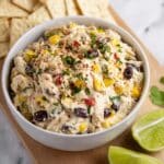 - Combine Ingredients: In a large bowl, mix together the shredded chicken, corn, black beans, red bell pepper, red or green onions, chopped cilantro, cumin, smoked paprika, salt, and pepper. Add the diced avocado and squeeze the juice of one lime over the mixture. Incorporate the mayo or Greek yogurt along with the hot sauce or chipotle sauce and stir everything well until evenly coated.