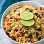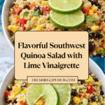Keywords: Southwest Quinoa Salad, quinoa salad, black bean salad, healthy quinoa recipe, vegetarian salad, gluten free salad, lime vinaigrette, easy dinner salad