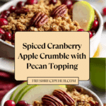 This Spiced Cranberry Apple Crumble with Pecan Topping is a delightful, warm dessert blending tart cranberries and sweet apples with a fragrant cinnamon and nutmeg spiced crumble. Topped with a buttery oat and pecan mixture, baked to golden perfection, it’s perfect for cozy gatherings or festive occasions.