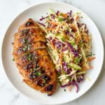 - Plate and serve: Arrange the sticky apple cider chicken thighs on plates with a generous portion of the crisp autumn slaw. Serve immediately to enjoy the perfect balance of sticky, sweet chicken and refreshing, crunchy slaw.