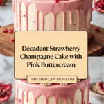 This elegant Strawberry Champagne Cake combines a light, fluffy cake infused with champagne and a luscious strawberry buttercream frosting. Perfect for special occasions, this recipe layers moist cake with rich, fruity frosting and is beautifully garnished with fresh strawberries, pomegranate seeds, and edible flowers for a stunning presentation.
