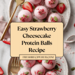 These Strawberry Cheesecake Protein Balls are a delicious, no-bake snack combining the creamy tang of cheesecake with fresh strawberries and a boost of protein. Made with almond flour, vanilla protein powder, and cream cheese, they’re perfect for a quick energy-boosting treat that feels indulgent but is packed with nutrition. Customize with optional add-ins like white chocolate chips or graham cracker crumbs for added texture and flavor.