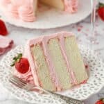 Keywords: strawberry moscato cake, layered cake, moscato wine cake, strawberry buttercream, wine reduction dessert