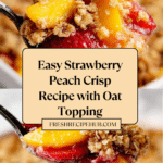 A delicious and easy-to-make Strawberry Peach Crisp featuring a buttery oat topping and juicy fruit filling, baked to golden perfection. This dessert combines sweet peaches and strawberries with a lightly spiced crumble for a warm and comforting treat perfect for any occasion.