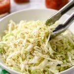 - Shred the cabbage: Finely shred the cabbage or slice it into very thin ribbons to create a crisp texture that will absorb the dressing well.