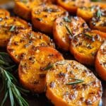 - Roast the sweet potatoes: Place the baking sheet in your preheated oven and roast for 20 to 25 minutes. Halfway through cooking, flip the sweet potato rounds carefully to ensure both sides become crispy and golden brown.