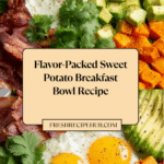 The Sweet Potato Breakfast Bowl is a vibrant and hearty start to your day, combining roasted sweet potatoes, crispy bacon, sautéed peppers, and perfectly cooked eggs. Finished with creamy avocado, tangy cheese, and a spicy sriracha sauce, this bowl offers a balanced mix of flavors and textures to energize your morning.