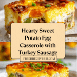 This Sweet Potato Egg Casserole is a hearty and flavorful dish perfect for breakfast or brunch. Packed with savory turkey sausage, tender sweet potatoes, and a cheesy egg blend, it’s both satisfying and nutritious. Easy to prepare and bake, it’s ideal for feeding family or guests.