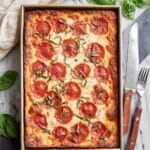 - Garnish and cool: Immediately top with fresh basil ribbons. Cool in the pan on a rack for 10-15 minutes, then carefully remove to a rack to avoid sogginess. Use scissors to slice and serve.