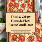 This Thick & Crispy Focaccia Pizza is a delicious twist on traditional pizza, featuring a soft, airy dough with a golden, crunchy crust. Topped with flavorful tomato sauce, melted mozzarella, pepperoni, and fresh basil, it’s perfect for a satisfying homemade meal.