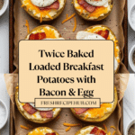 Twice Baked Loaded Breakfast Potatoes combine crispy roasted potatoes with a creamy, cheesy filling and a perfectly cooked egg on top. This comforting dish is a hearty way to start your day and is sure to impress family and friends with its rich flavors and satisfying texture.