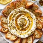 This whipped feta with honey is a delightful balance of creamy, tangy, and sweet flavors with a hint of spice. It’s a simple yet elegant dip perfect for entertaining or a tasty snack with toasted baguette slices.