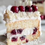 This White Forest Celebration Cake is a luscious, multi-layered dessert featuring tender vanilla cake layers soaked with cherry syrup, filled and topped with fluffy whipped cream, fresh cherries, and white chocolate shavings. Perfect for special occasions, this cake combines the sweetness of cherries and cream with the delicate richness of white chocolate for an elegant and festive treat.